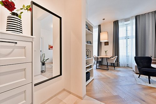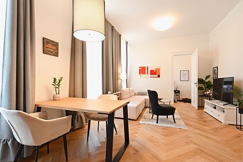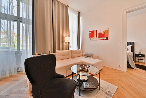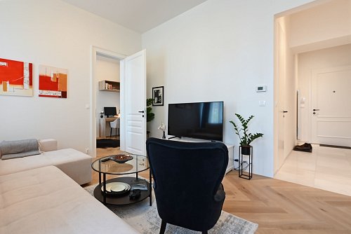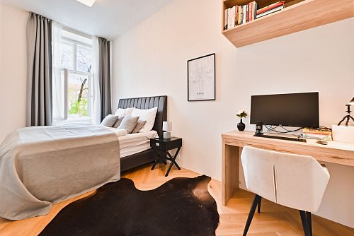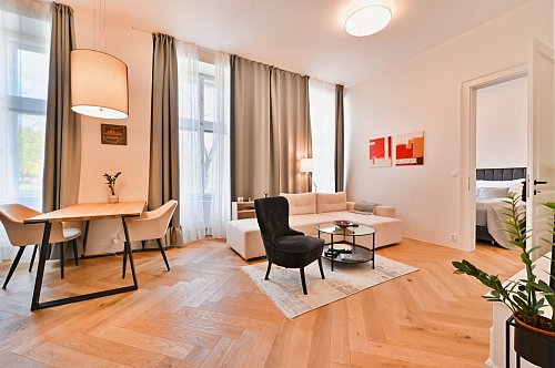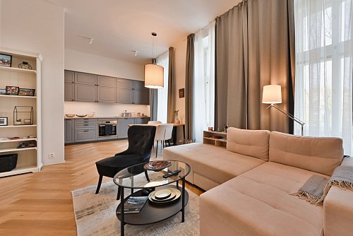 Jedná se o plně vybavený secesní byt po nedávné nadstandardní kompletní rekonstrukci.